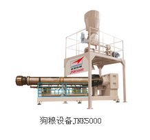 JNK5000金诺宠物食品设备(狗粮食品加工设备)特点:狗粮设备采用双螺杆挤出结构,配备变速箱,原料调质器,电加热装置和蒸气锅炉。装机容量250千瓦,狗粮制造设备同时出70粒狗粮颗粒,制造机械通过更换模具可生产几十种狗粮颗粒形状。JNK500-T宠物食品制造设备每小时产狗粮颗粒5000公斤。